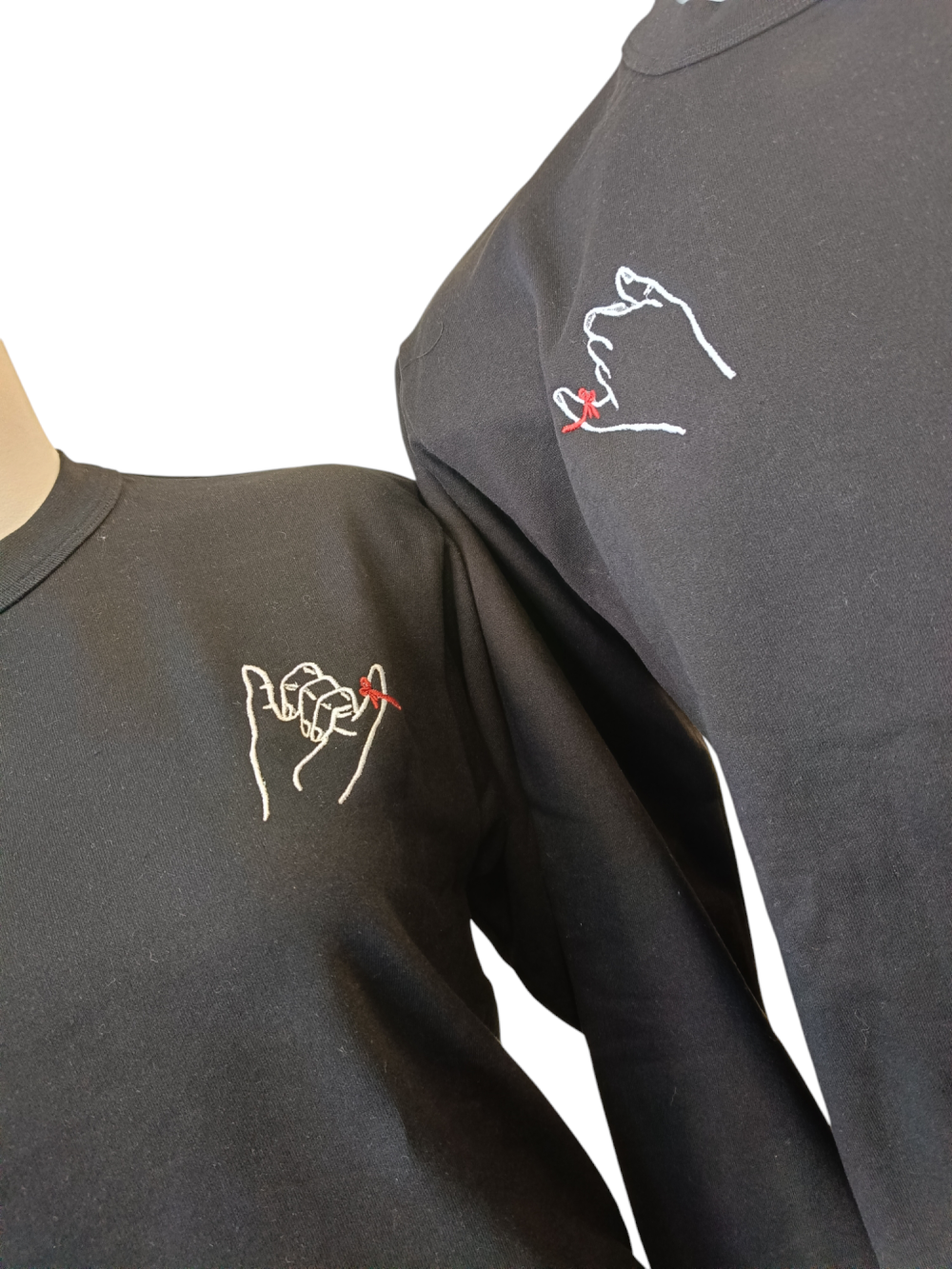 Coppia di Felpe 100% cotone con ricamo mani e filo rosso eseguito a macchina. Possibilità di personalizzazione con il vostro nome
